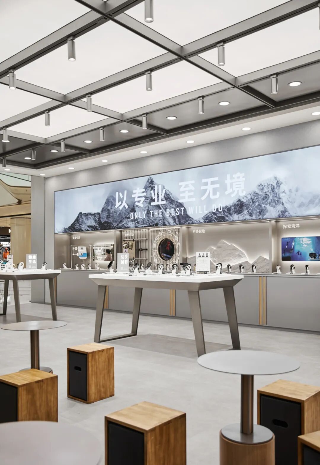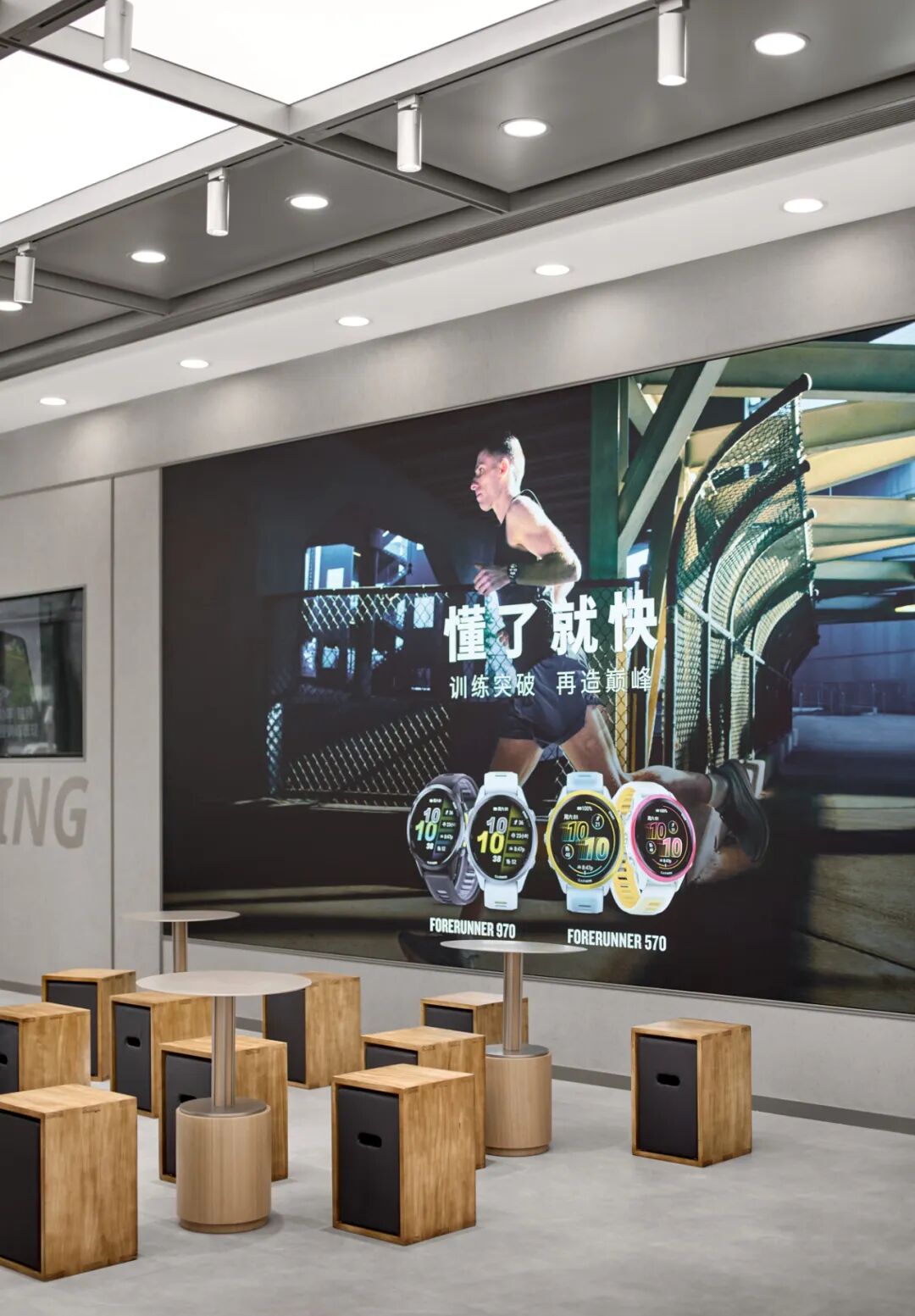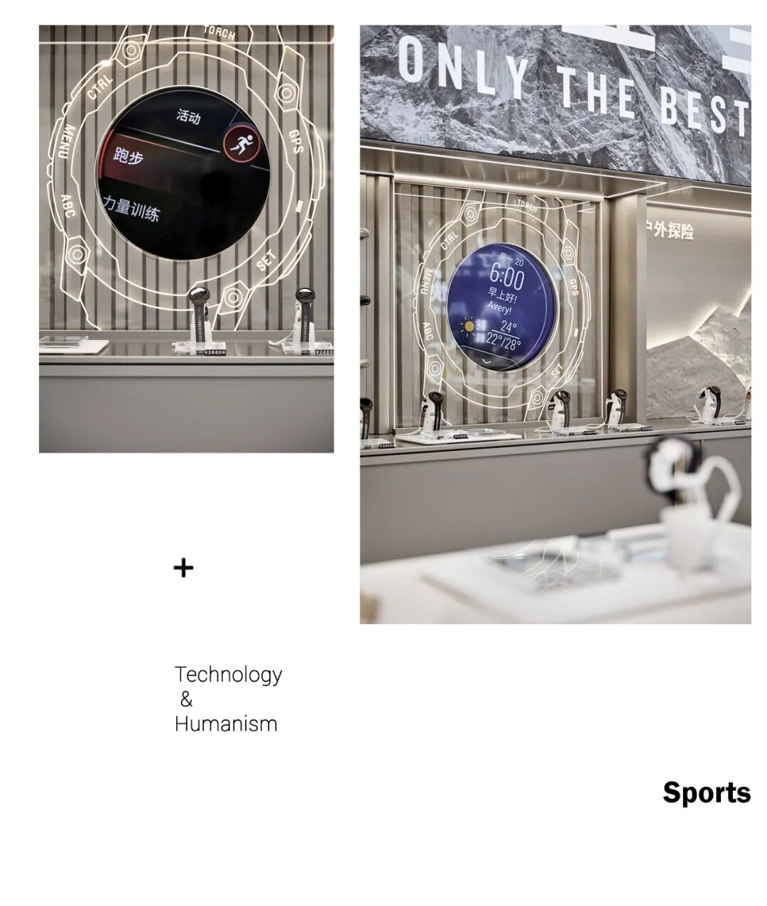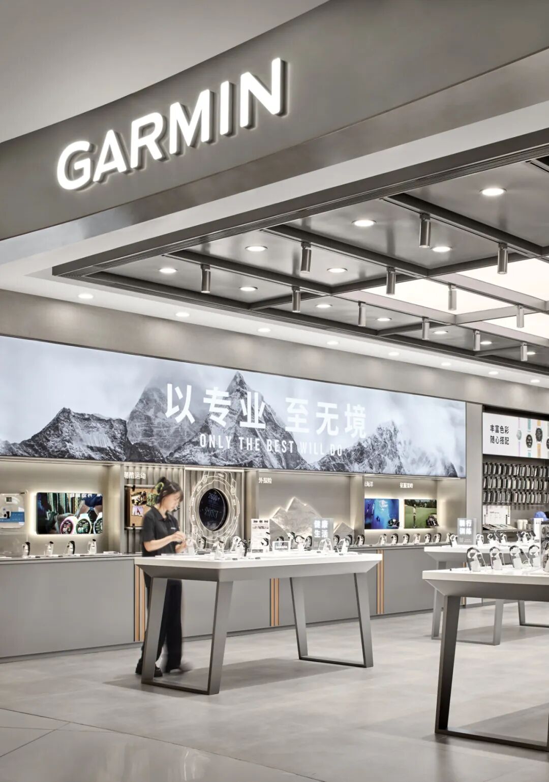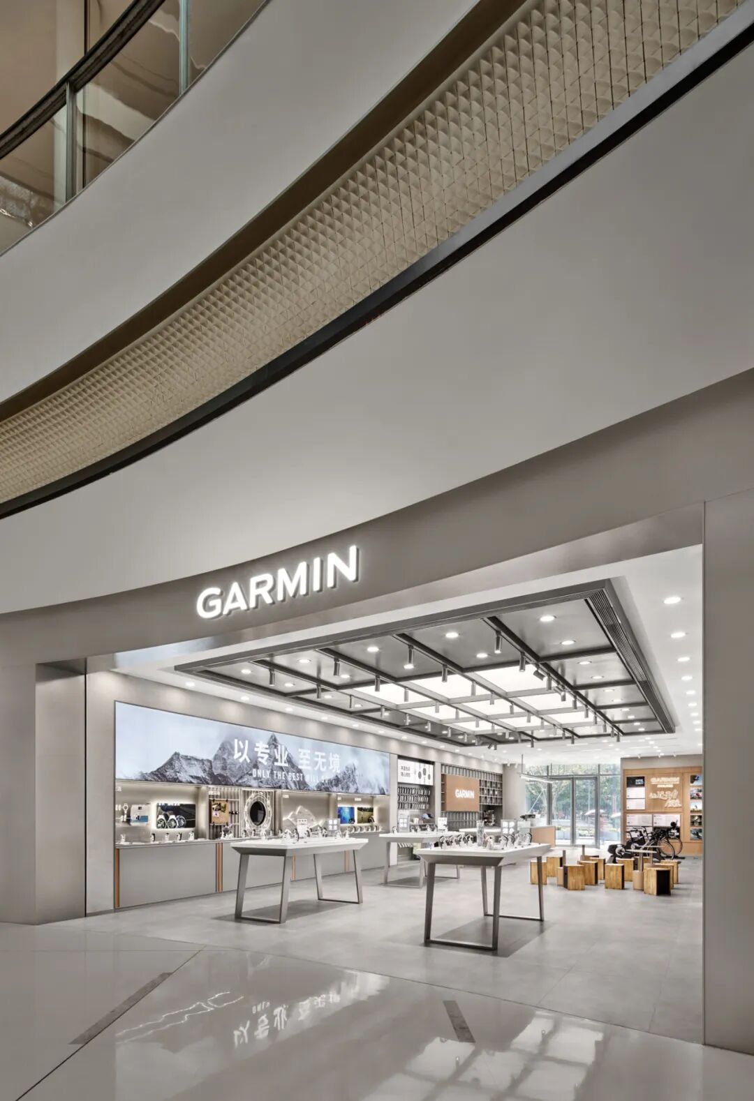 这种 “以用户为中心” 的品牌精神,在南京旗舰店的设计中被深度转译。设计团队将品牌 “以专业,至无境” 的 Slogan 与用户情感需求绑定。这一口号源于品牌对 “运动无边界” 的理解 ——每一次对自我的突破,都是 “无境” 精神的体现。让品牌精神从 “抽象理念” 变为 “可感知的情感共鸣”,使空间成为 Garmin “陪伴用户突破每一次不可能” 的精神载体。