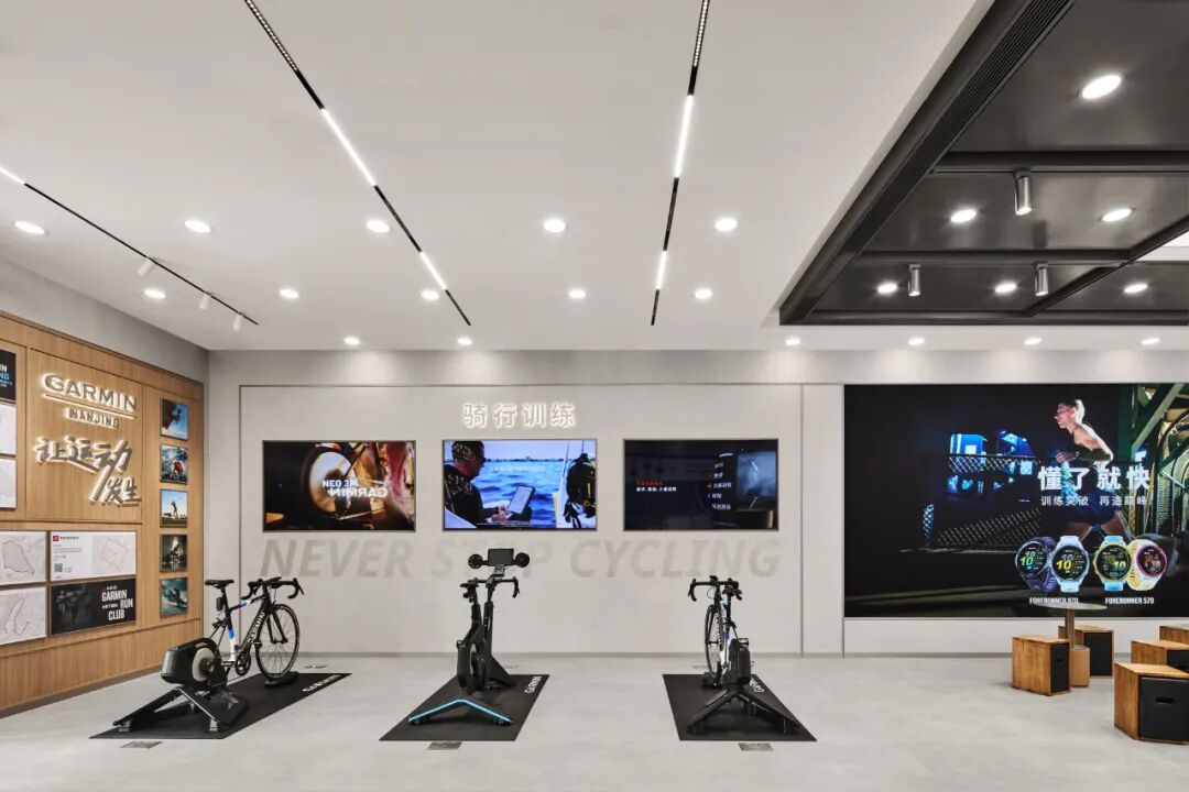 Garmin 南京旗舰店的设计实践,证明了商业空间并非 “产品的容器”,而是 “品牌与用户的桥梁”。从品牌叙事的空间转译,到氛围营造的平衡术,再到设计手法的落地与商业思维的融入,本案始终以 “用户体验” 为核心,将科技产品的专业性、商业空间的功能性、在地文化的独特性融为一体 —— 用户可在骑行生态区存储私藏训练路线,在咖啡区交流运动需求,在配件区挑选适配场景的产品,最终实现 “品牌价值传递”“用户情感共鸣”“商业目标达成” 的多重目标。对于运动科技类商业空间而言,这种 “以设计为驱动,以体验为核心” 的模式,无疑为行业提供了新的思考方向。