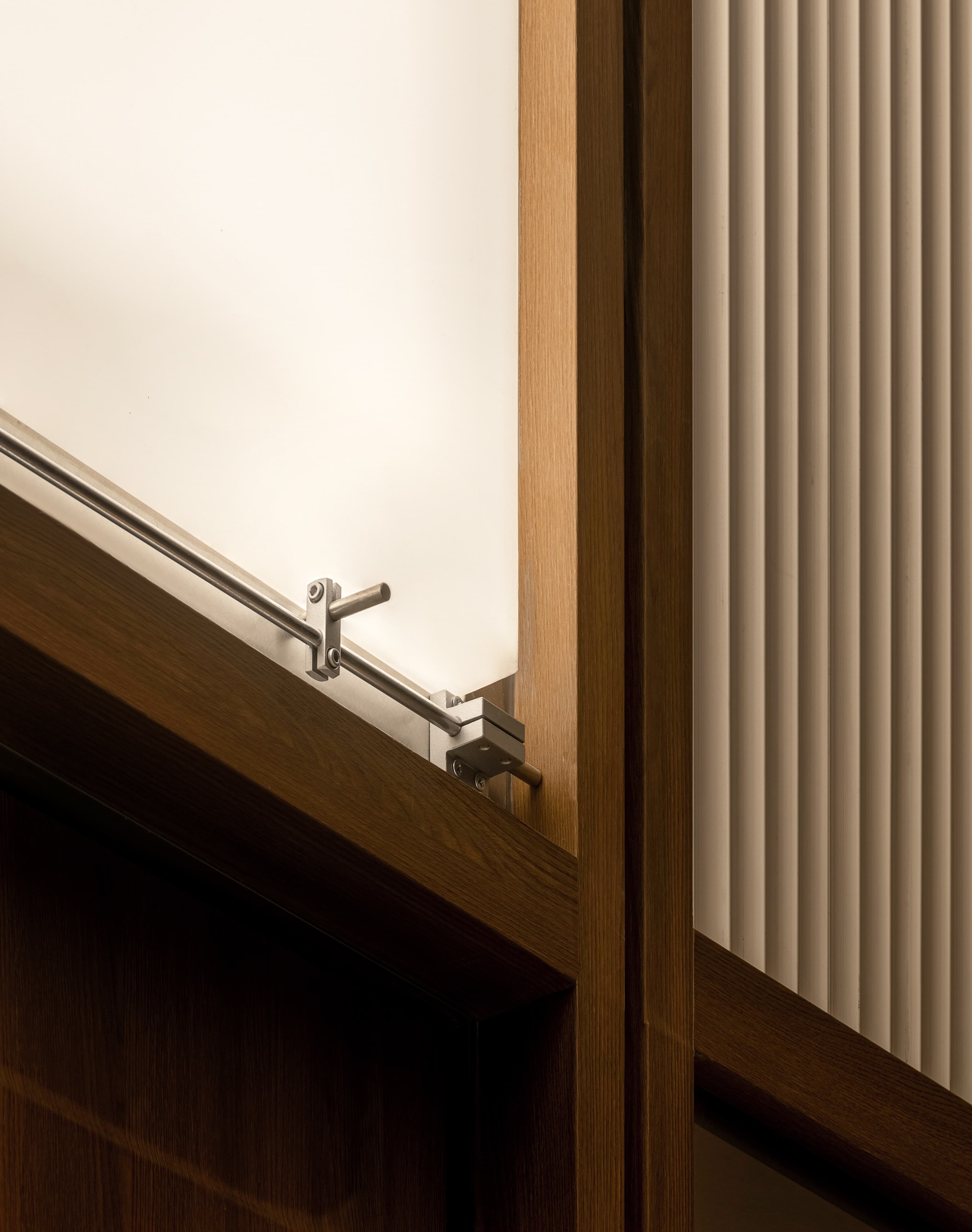 设计从大连的港口历史与海浪形意中抽丝剥茧:天花与地面的起伏线条若浪涌层叠,碎贝壳如散落岸边的时光碎片,胡桃木的天然纹路与金属的工业气息隐喻城市新旧交融。元素取舍皆考量施工落地的可行性,以简驭繁,令文化意象轻盈附着于现代空间骨架之上,无声诉说着属于大连的故事。